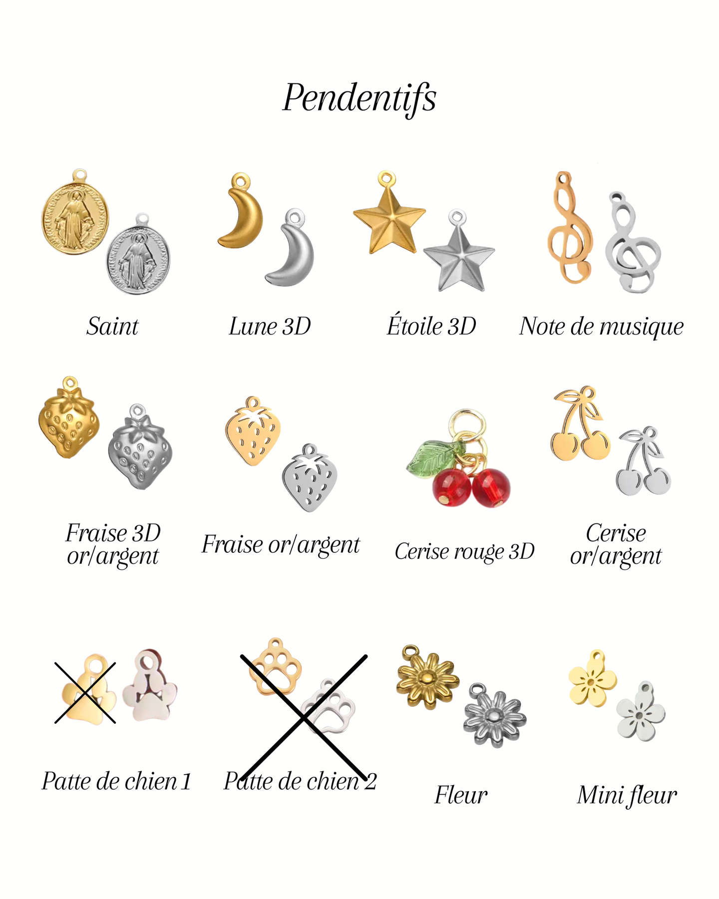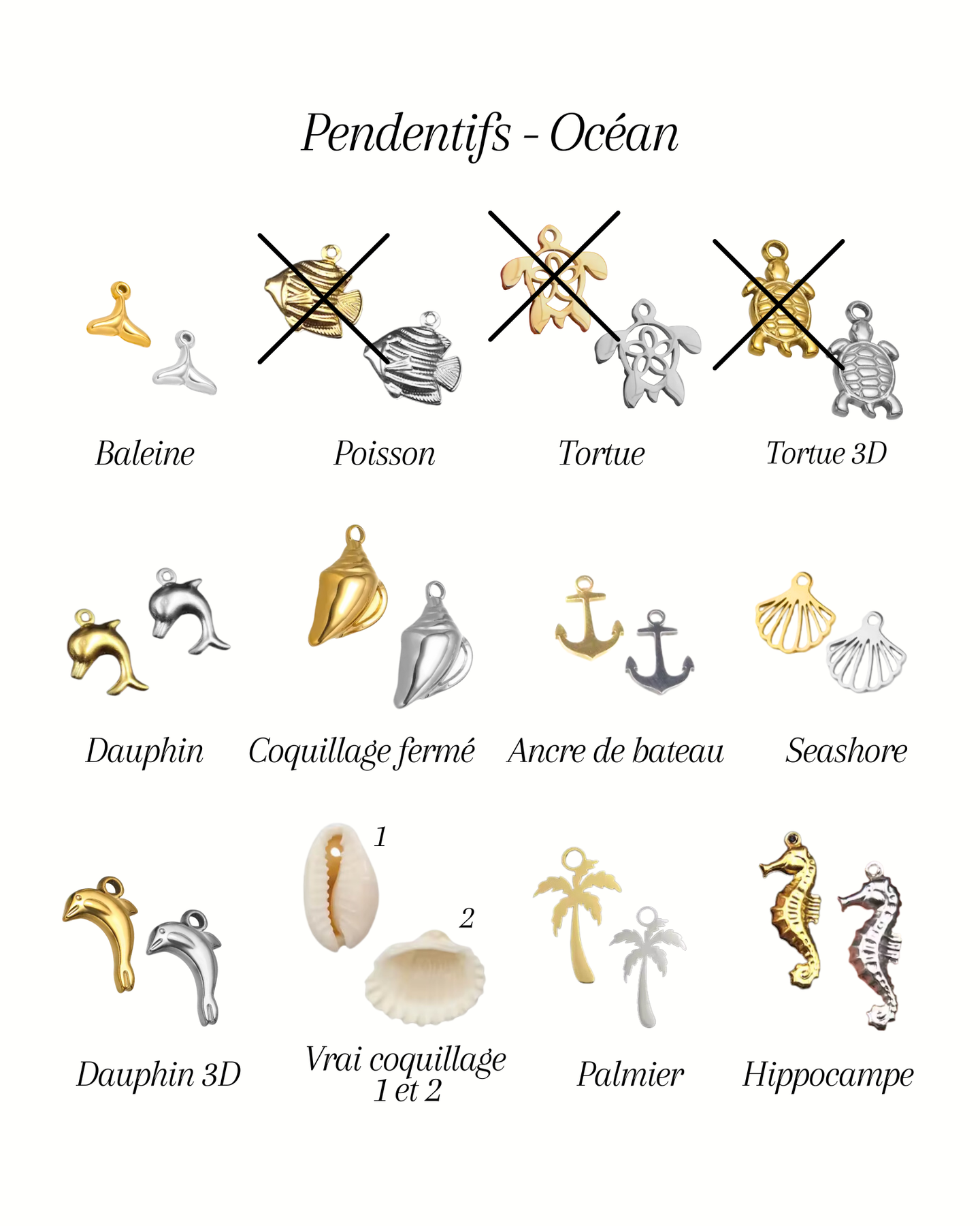J'ai commadé deux colliers à 5 breloques chaque. Un or et un argent et il sont superbes! Je porte le mien depuis 20 jours à tous les jours, sous la douche et il reste beau.