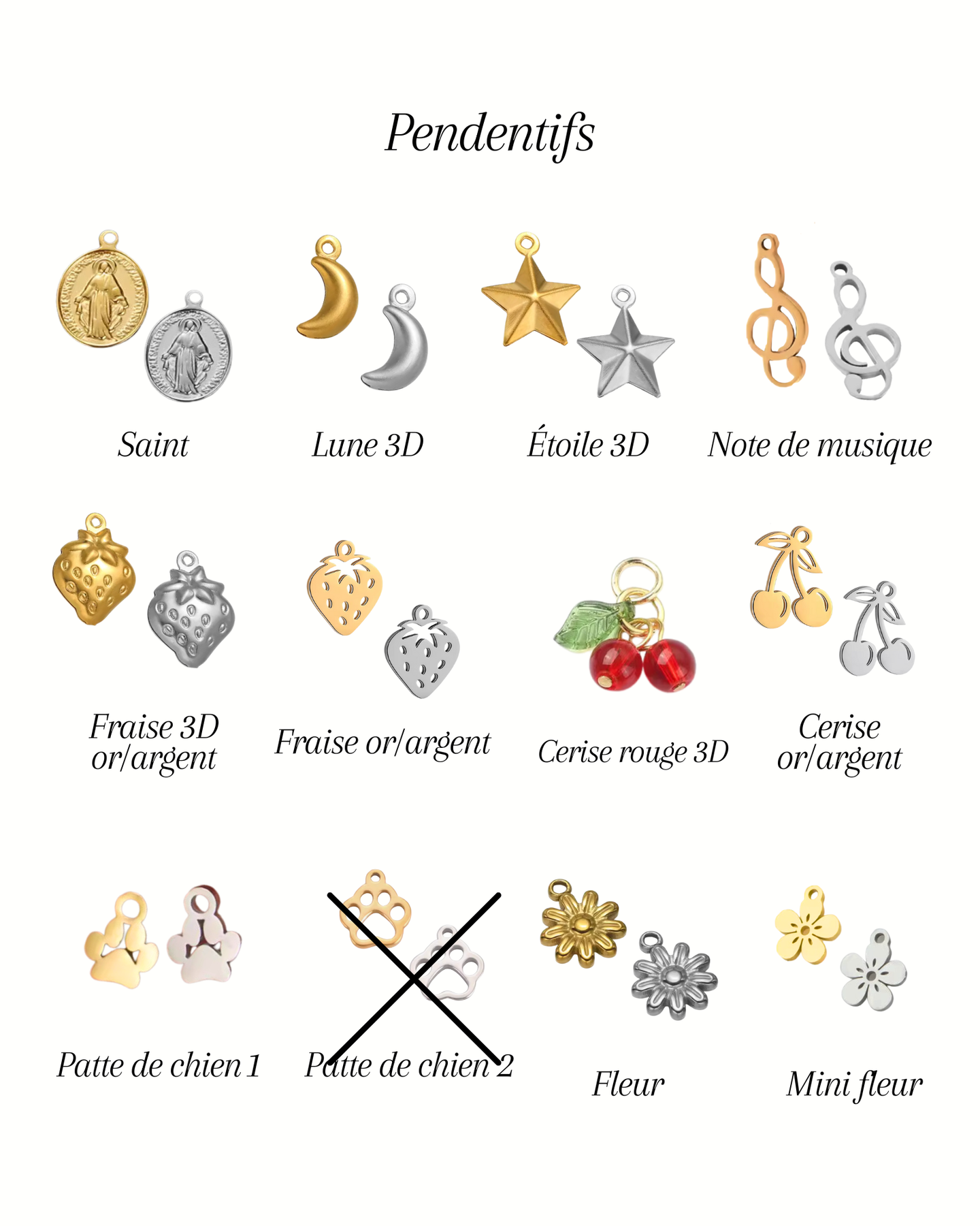 J'ai commadé deux colliers à 5 breloques chaque. Un or et un argent et il sont superbes! Je porte le mien depuis 20 jours à tous les jours, sous la douche et il reste beau.